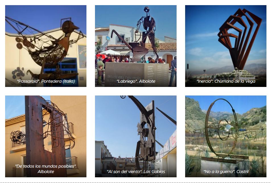 - Exposición Las horas del tiempo (Centro Cultural de Purchil – 2.002) – Escultura pública No a la Guerra (Parque de la Paz – Castril – Permanente – 2003)